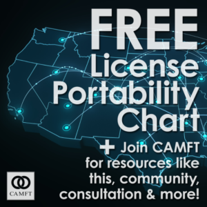 Members receive access to the entire 50-state chart in their CAMFT membership, but we have created a sneak-peak License Portability Chart for the top 5 states for all MFTs (for FREE). For access to the full chart and to join CAMFT, click the link.